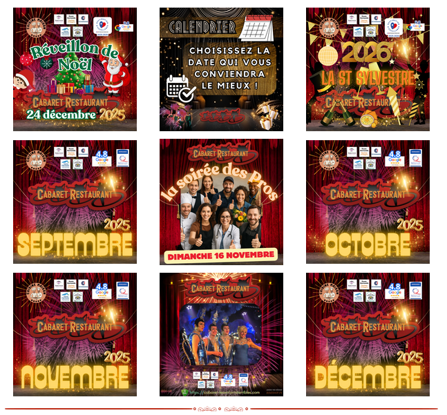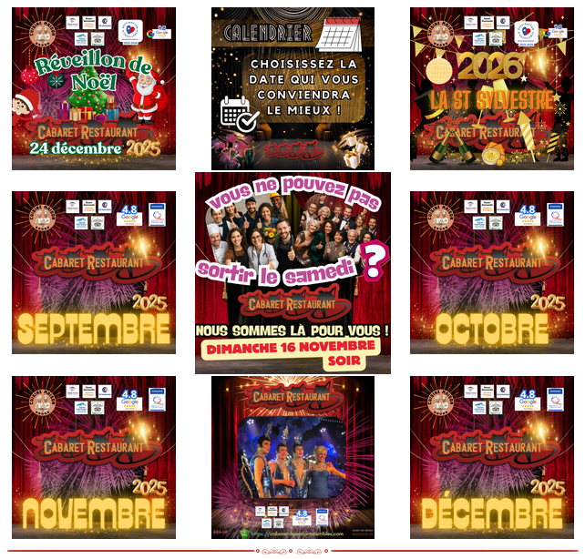 Dès la fin du repas un spectacle de 1h 45 vous sera présenté pour vous étonner , vous faire rire et surement aussi vous émouvoir.